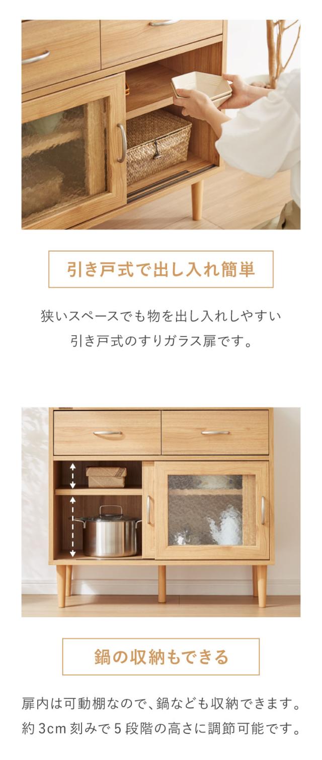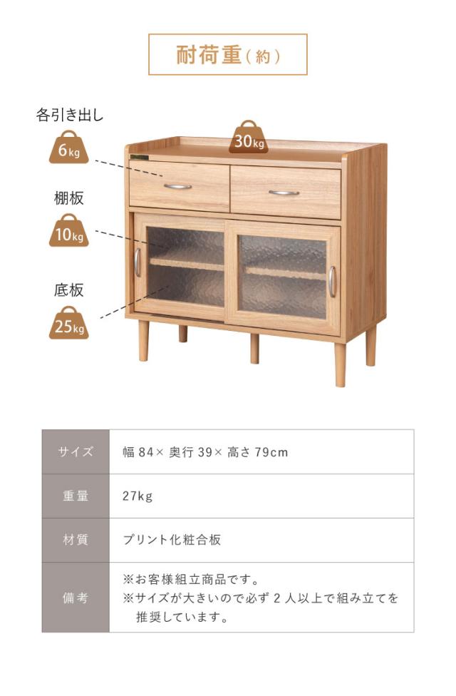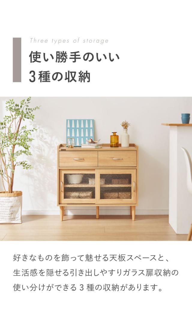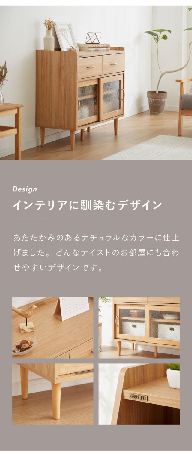 コンパクト ボード 幅84cm キッチンボード 木目調 擦りガラス扉 可動棚 シンプル おしゃれ 北欧 ヴィンテージ レトロ 引き出し付き レンジ台 電話台 カウンター スリム(代引不可)【送料無料】