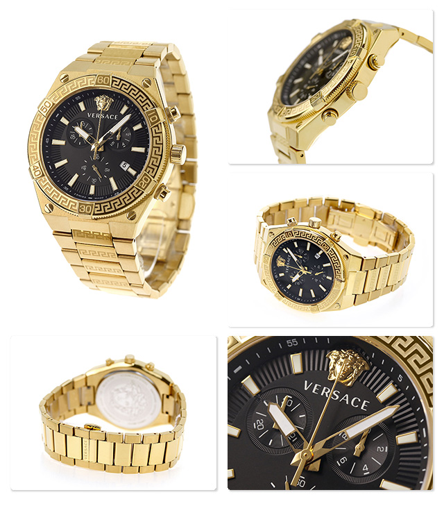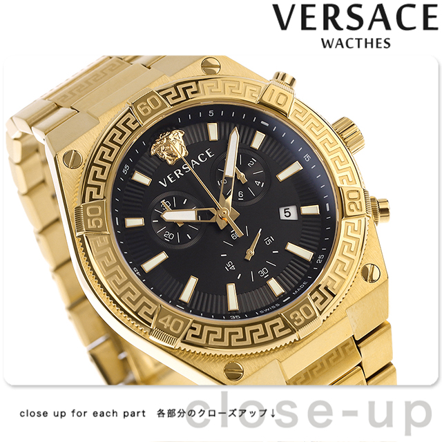 ヴェルサーチ スポーティー グレカ クオーツ 腕時計 ブランド メンズ クロノグラフ VERSACE VESO00922 アナログ ブラック ゴールド 黒 スイス製