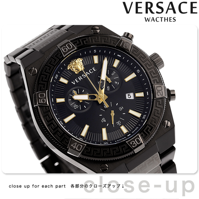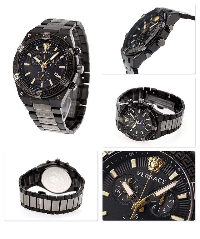 ヴェルサーチ スポーティー グレカ クオーツ 腕時計 ブランド メンズ クロノグラフ VERSACE VESO01022 アナログ ブラック ガンメタル 黒 スイス製