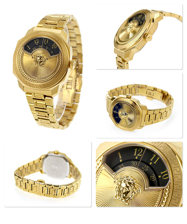 7年保証キャンペーン ヴェルサーチ ダイロス アイコン スイス製 メンズ レディース 腕時計 VQU050015 VERSACE DYLOS ICON アナログ ブラック ゴールド 黒 ◆VERSACE(ヴェルサーチ)は、1978年にジャンニ・ヴェルサーチにより設立されたイタリアブランドです。ジャンニ亡き後、妹のドナテラ・ヴェルサーチが引き継いで先任デザイナーに就任。ヴェルサーチウォッチはすべてスイスで作られており、高品質かつ高精度さが魅力です。古典と現代の完璧なバランスをもつデザインは、幅広い世代に好まれています。 大胆なデザインの文字盤が特徴のモデル。ブランドのシンボルでもあるメデューサが配置されています。誕生日や記念日のプレゼントにもおすすめです。 ベルサーチ ヴェルサーチェ