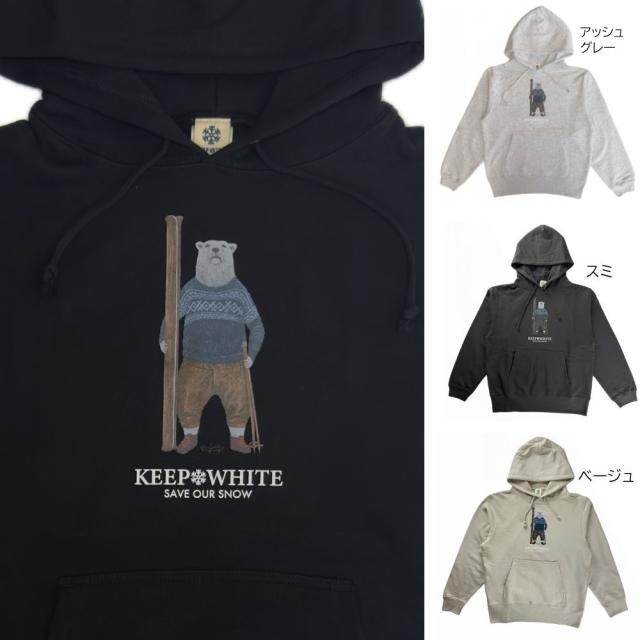 スキー場・ゲレスポでもスキーヤーやスノーボーダーに人気の「KEEP WHITE プルオーバーパーカー」。