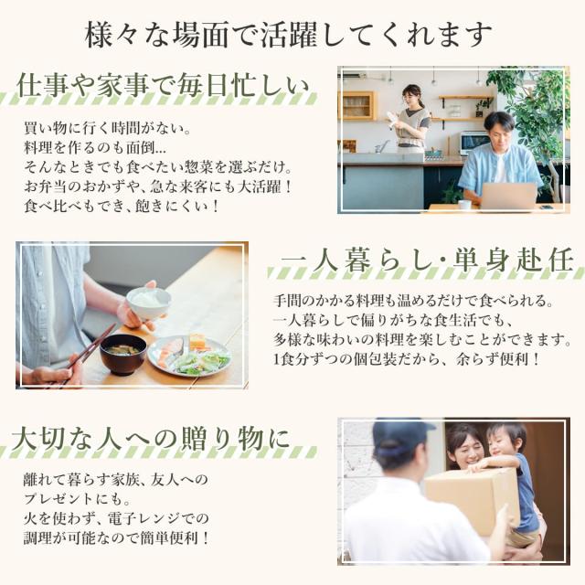 野菜 肉 魚 煮物 おばんざい や 肉じゃが 焼き魚 ハンバーグ 牛すじ煮込み 筑前煮 など 和食 洋食 おかず 主菜 副菜 とレパートリーが豊富。