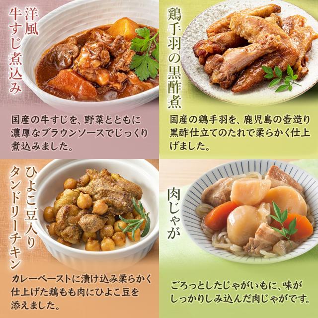 下記商品が終売のため20食から17食に変更しました。 クリームシチュー 200g ビーフシチュー 200g 貝柱のクラムチャウダー 160g 7種野菜のミネストローネ 160g |