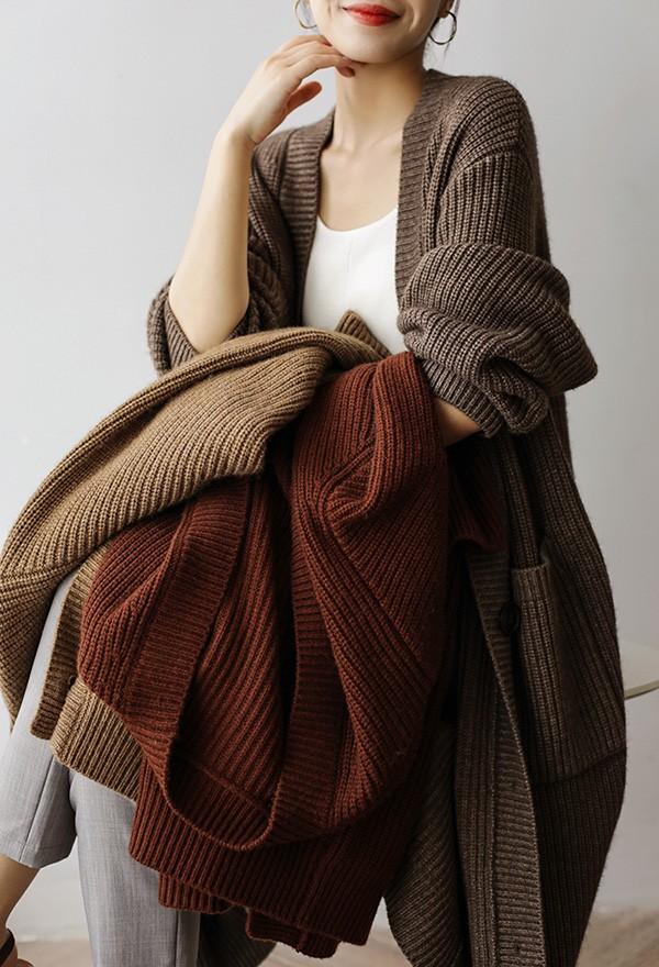 ロングカーディガン トップス 秋冬 厚手 ニットカーディガン エレガント 上品 シンプル オフィス 秋冬コーデ 羽織り セーター アウター コート トップス カジュアル 暖かい 大きいサイズ ゆったり オーバーサイズ bs037s1s1l9