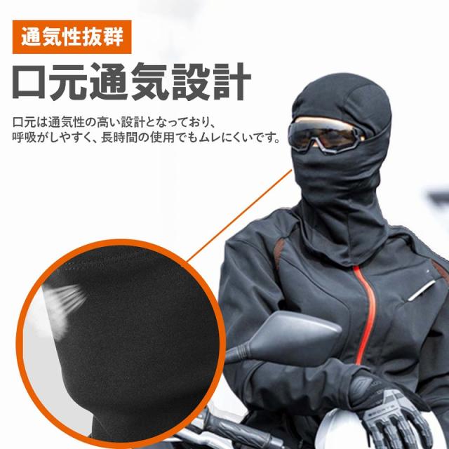 高品質の縫製技術を採用しており、長持ちすることが特徴です。口元は通気設計で、呼吸がしやすく、長時間の使用でも快適です。ヘルメットとの組み合わせも可能で、風を防ぎながら暖かさを保持します。