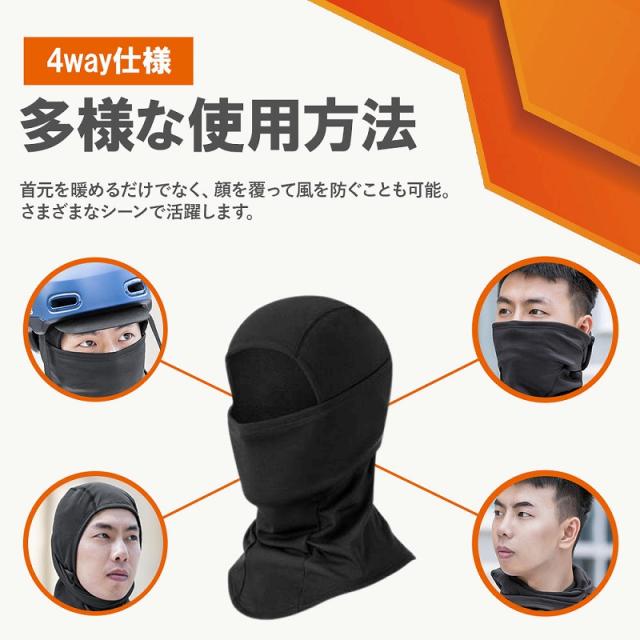 ランニングや自転車、バイクといったアウトドアシーンに最適です。4way防寒ネックウォーマーで、寒い季節でも暖かく、快適なアウトドア体験を手に入れましょう。