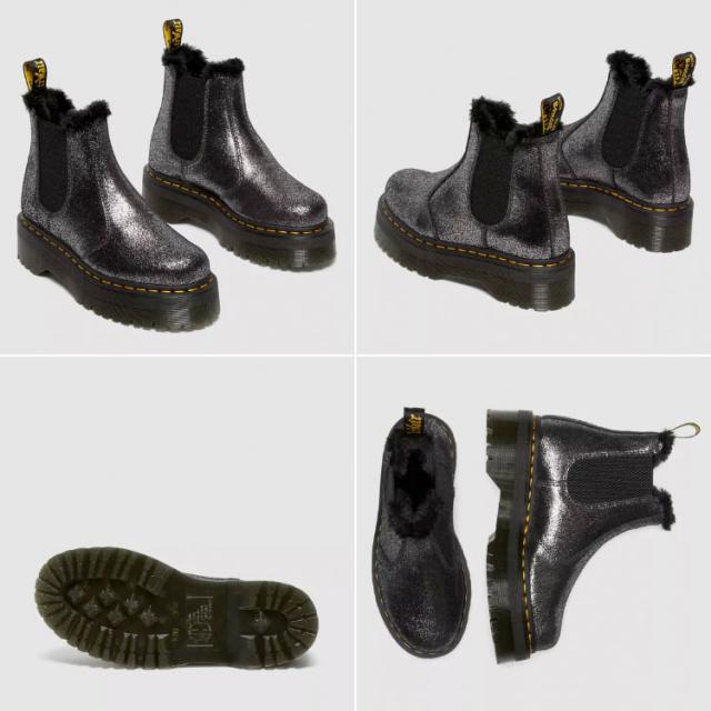 商品名:Dr.Martens 2976 FAUX FUR-LINED METALLIC PLATFORM CHELSEA BOOTS BLACK Distressed Metallic 27956012