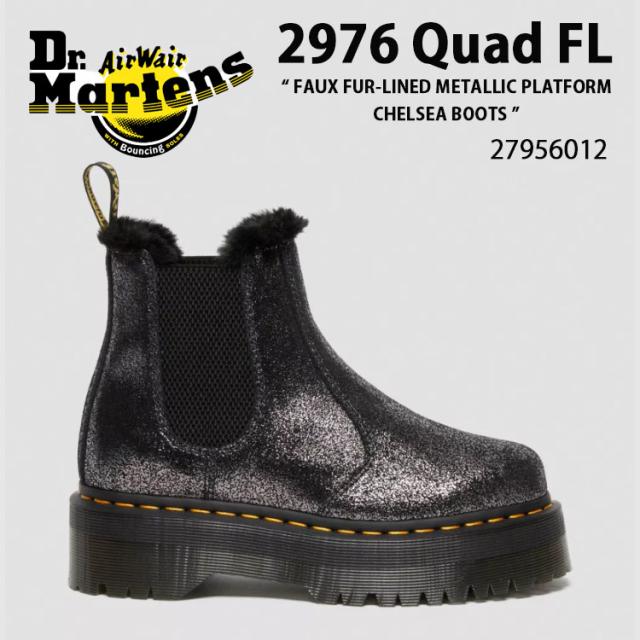 ドクターマーチン 2976 Quad FL DM Black / Silver Distressed Metallic 27956012 2976 サイドゴア チェルシーブーツ ブラック シルバー メタリック レザーブーツ