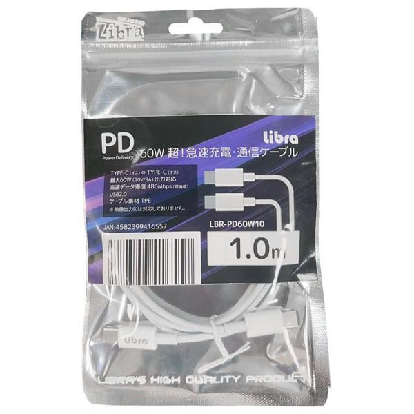 | 60W PD 超!急速充電・通信ケーブル Type-C⇔Type-C 1m | |