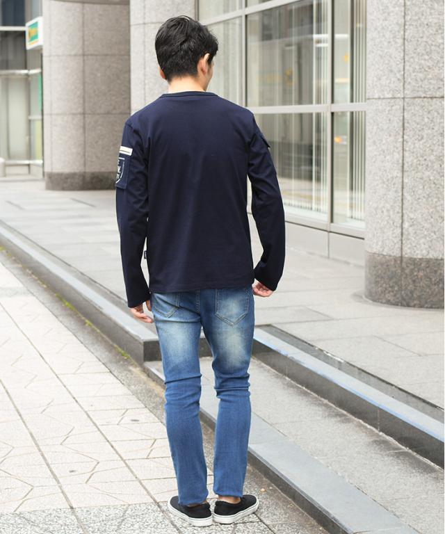 ファティーグパンツからインスパイヤーされたポケットが両袖に付いたミリタリー要素満載のアイテム。