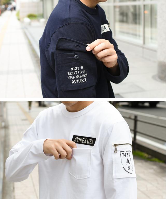 新作 AVIREX アヴィレックス ロングスリーブ ファティーグ Tシャツ メンズ トップス カットソー 長袖 ロンTおしゃれ ブランド アビレックス クルーネック カジュアル ミリタリー シンプル 綿100%