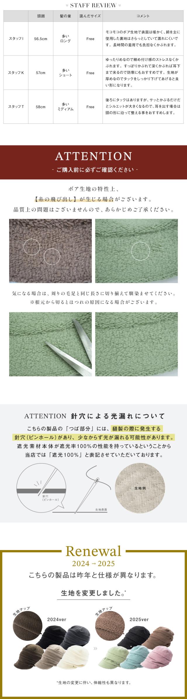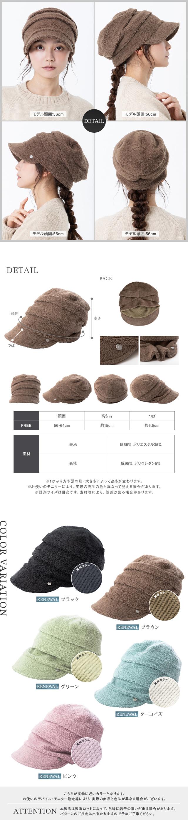 | ・高さはモデル着用時の高さを記載しています。 ・頭囲・高さのサイズ表記は、5ミリ前後の誤差が生じる場合があります。計測サイズは目安としてお考えください。 ・遮光生地の厚さには多少の差異があり、中にはシャカシャカと音がする場合があります。 ・お取り扱いの前に品質ネームタグの記載内容をご確認ください。 ・ご覧頂くモニターの発色具合によって実物と色が異なって見える場合があります。 ・単品商品の撮影画像が実際の商品と色合いが近くなっていますので、ご参照ください。 ・同商品でも、染色過程で色味が多少変わる場合があります。 ・つば先ワイヤー入りです。 |