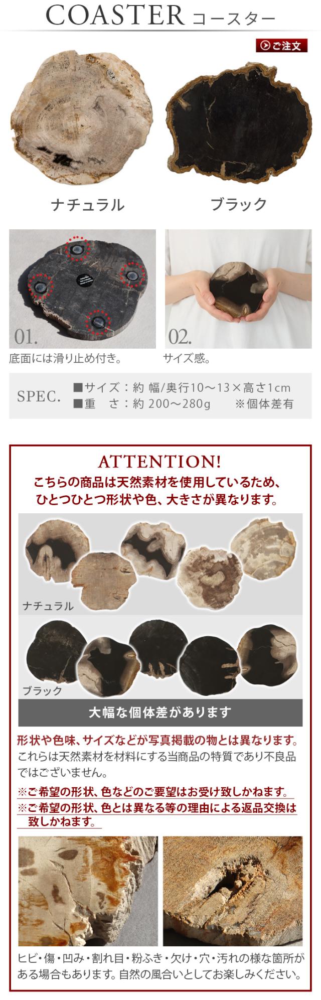 | 樹木の化石、珪化木を使用したコースター |