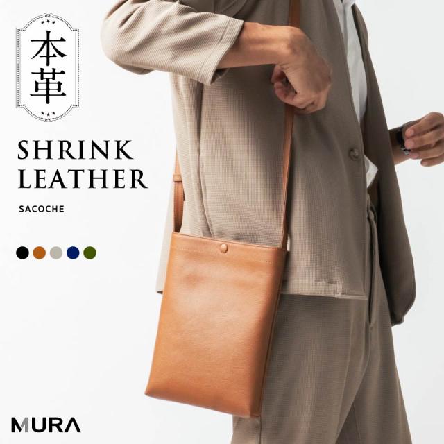 ・商品名:【MURA】シュリンクレザー 縦型 サコッシュ ショルダーバッグ