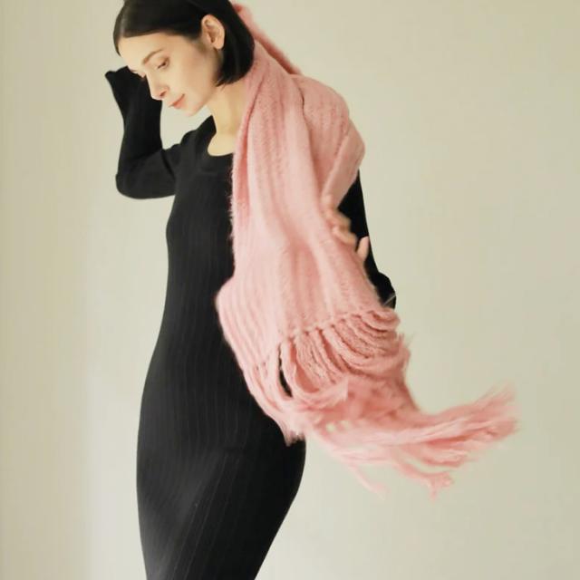 モヘアボリュームカーディガンと同じ糸でお作りしたマフラー。