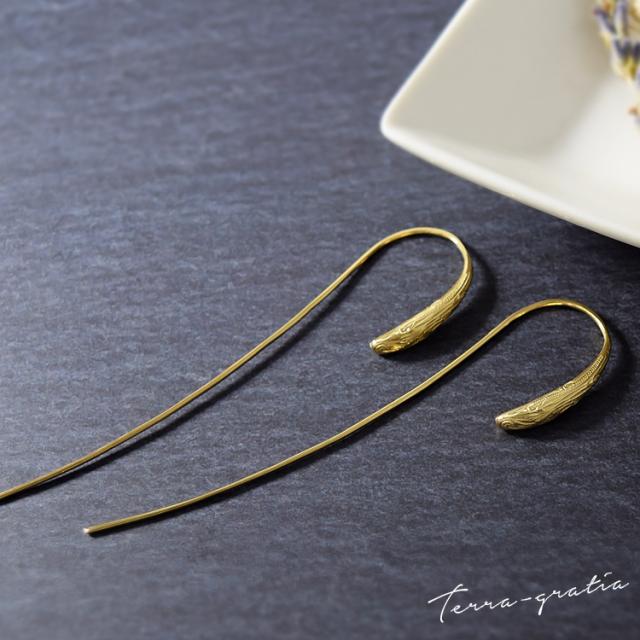 ハワイアンジュエリー ピアス ロングフックピアス カーブ ドロップ 金属アレルギー対応 ステンレス レディース キャッチレス イエローゴールドカラー gess438yg