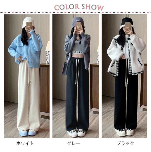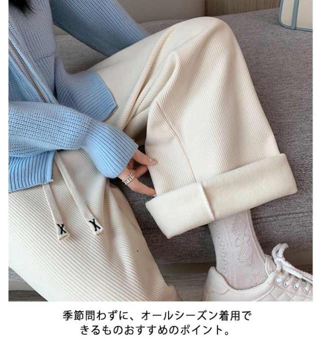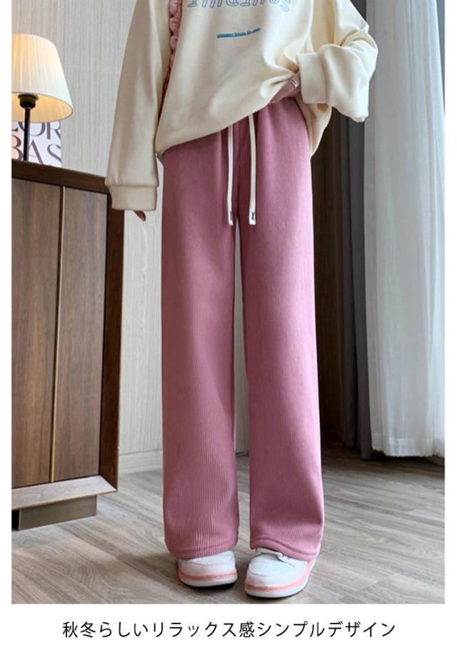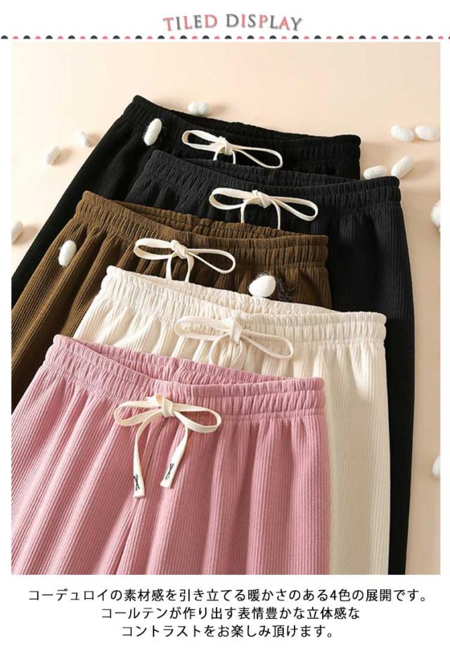 パンツ 裏起毛 秋 イージーパンツ レディース 大きいサイズ 冬 リブパンツ ワイド コーデュロイ 防寒 流行 ゆったり 無地 刺繍紐 カジュアル おしゃれ ウエストゴム 可愛い 着回し S M L XL
