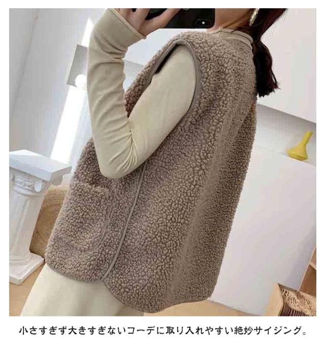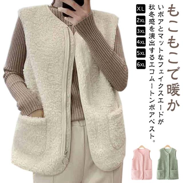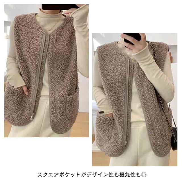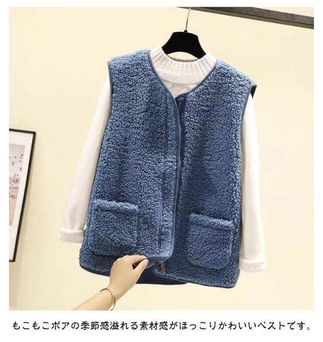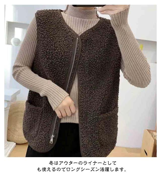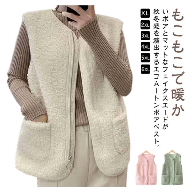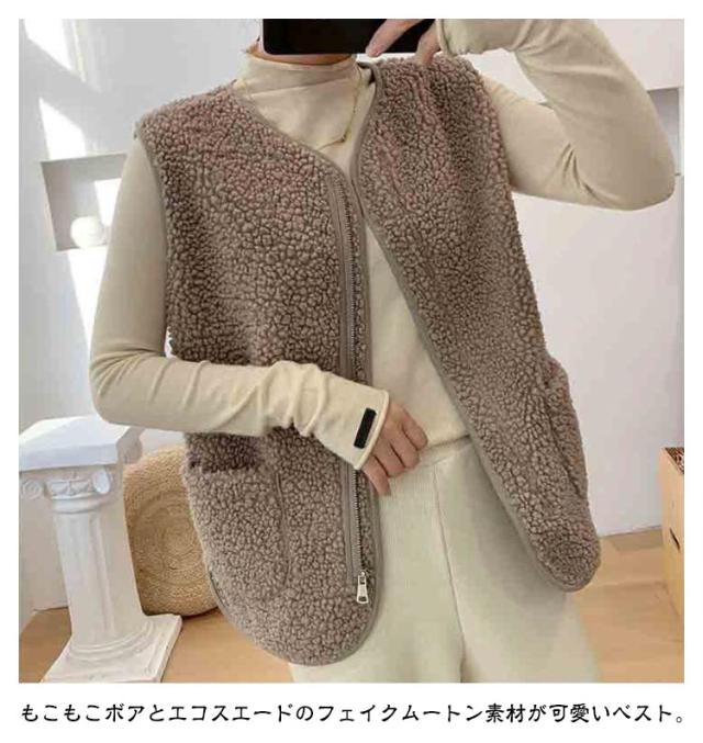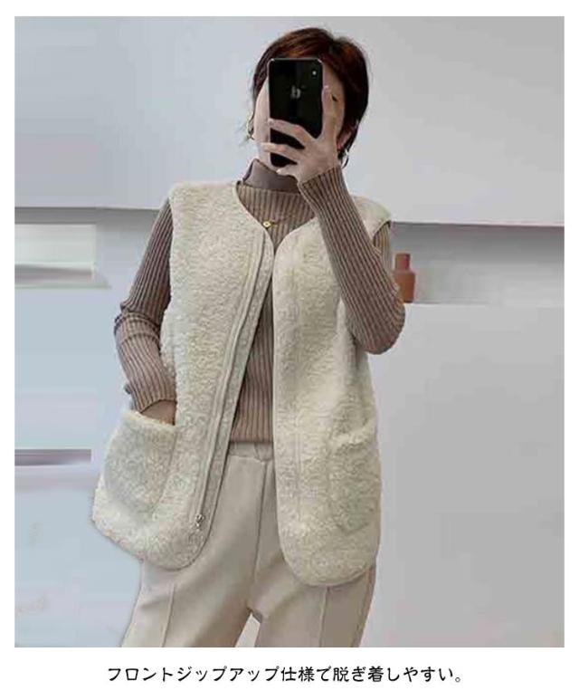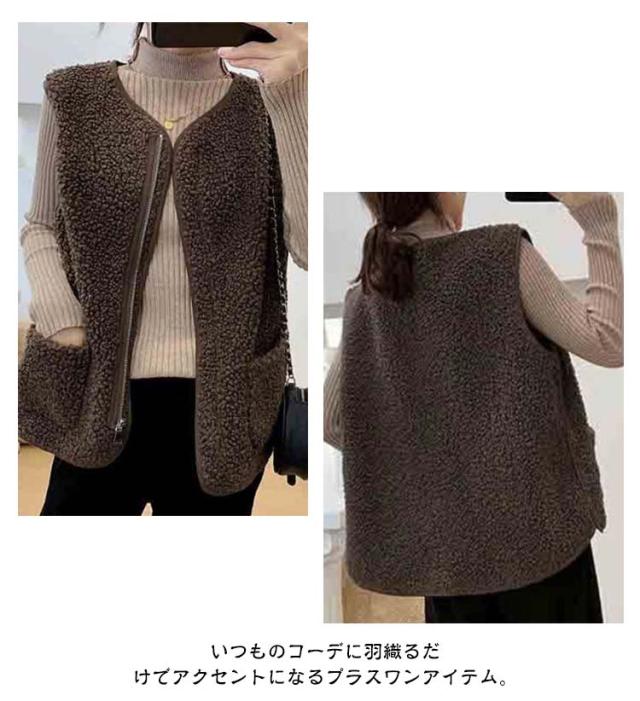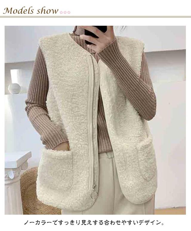 羽織り ボアベスト ジップアップ もこもこ ノーカラー ボアジャケット ショート丈 秋物 秋 トップス ボア ボアベスト 冬 ノースリーブ ふわふわ カジュアル 秋服 インナーベスト 韓国 きれいめ あたっか 大人 40代 20代 30代 レディース