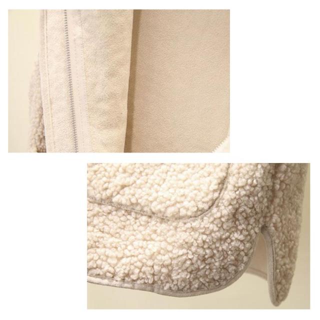 | もこもこで暖かいボアとマットなフェイクスエードが秋冬感を演出するエコムートンボアベスト。 もこもこボアとエコスエードのフェイクムートン素材が可愛いベスト。 小さすぎず大きすぎないコーデに取り入れやすい絶妙サイジング。 ノーカラーですっきり見えする合わせやすいデザイン。 フロントジップアップ仕様で脱ぎ着しやすい。 スクエアポケットがデザイン性も機能性も◎ 冬はアウターのライナーとしても使えるのでロングシーズン活躍します。 いつものコーデに羽織るだけでアクセントになるプラスワンアイテム。 もこもこボアの季節感溢れる素材感がほっこりかわいいベストです。 | |