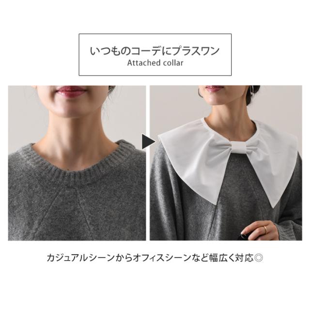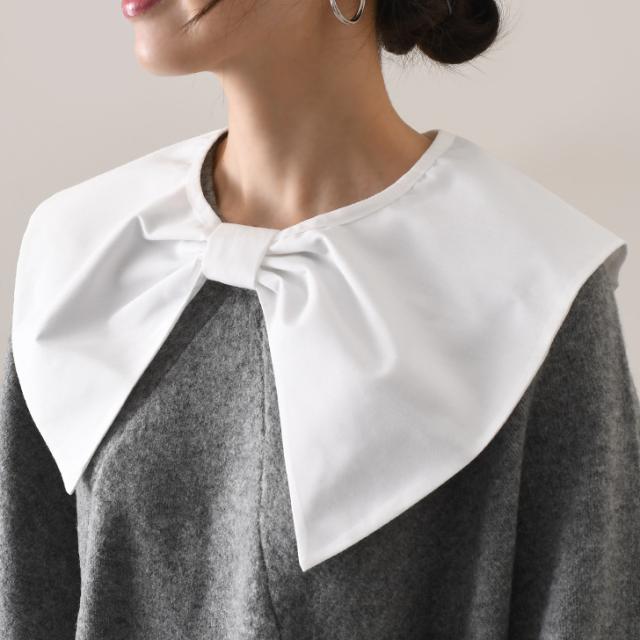 新作 前後2way ビックカラー コットン リボン つけ襟 付け襟 レディース 無地 綿 天然素材 ナチュラル レイヤード風 重ね着風 春夏 付け衿 つけ衿 可愛い かわいい レトロ おしゃれ 雑貨 小物