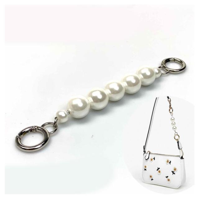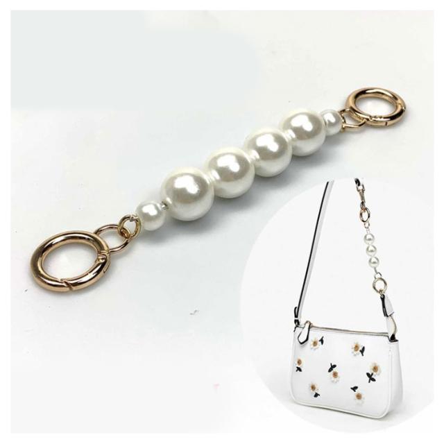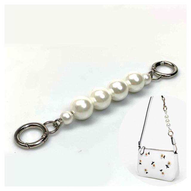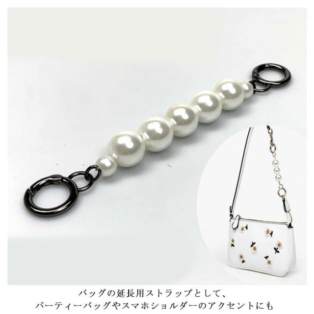 交換用 2点セット!パールストラップ バッグチャーム エクステンションチェーン カードケースチェーン バッグ延長ストラップ 高級感 パールストラップ 落下防止 カラビナ ショルダーチェーン キーホルダー 長くなる 短め バッグ延長チェーン 取り外し可能