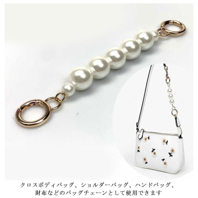 | あと少しだけショルダーを長くしたいを叶えてくれるバッグストラップ 高品質な素材を採用しており、耐久性が良くて長い時間を使用してもオッケーです パールが上品で華やか。 どんなアイテムとも合わせやすくカジュアルにもキレイめにもこれ一つでOK。 バッグの延長用ストラップとして、パーティーバッグやスマホショルダーのアクセントにも クロスボディバッグ、ショルダーバッグ、ハンドバッグ、財布などのバッグチェーンとして使用できます | |