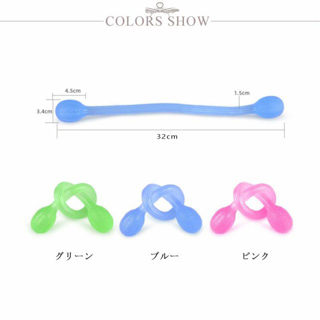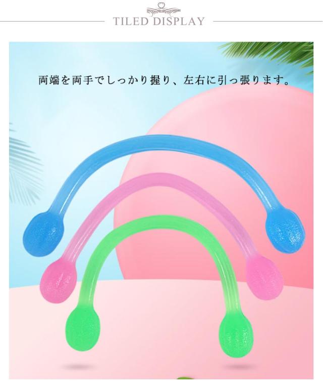 | 伸縮自在!ストレス解消、上半身のエクササイズ! 両端を両手でしっかり握り、左右に引っ張ります。 鍛えたい部位に意識を集中して伸ばします! どこでも簡単!バックに入れていつでも使えます! 小さくて、持ち運びのしやすいサイズ。 バッグなどにもスッと入るのでいつでもストレッチが出来ます。 高品質なSEBS素材で、弾性と靭性に優れています。 摩耗にも強いので長くお使いいただけます。 握りやすい球形と滑り止めの凸凹が付いています。 | |