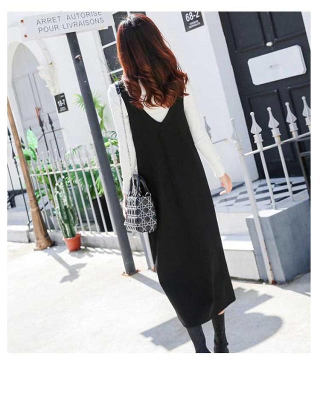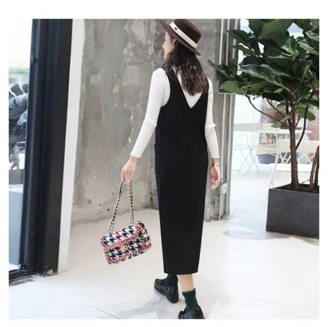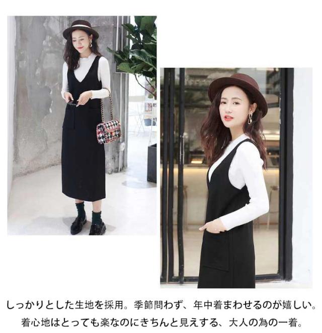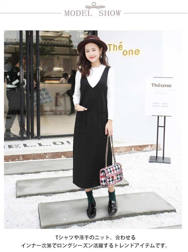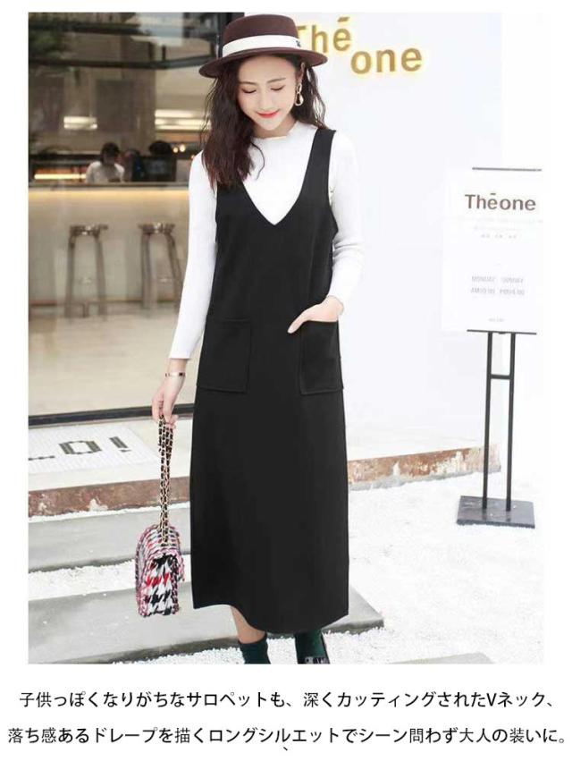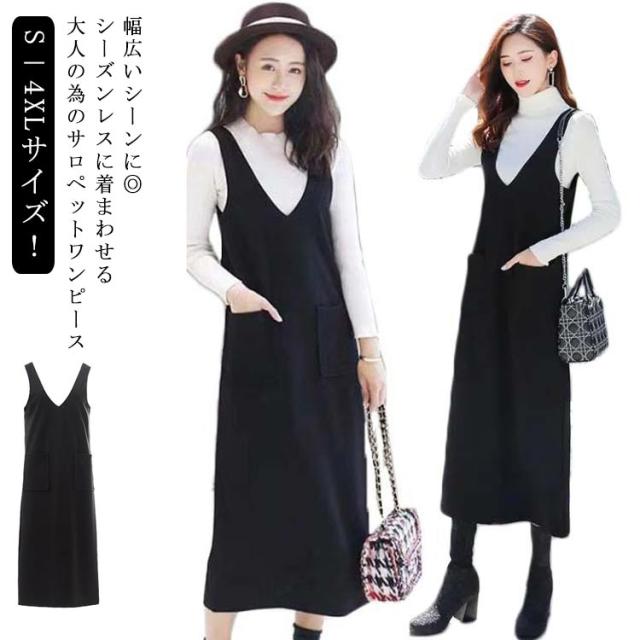 レディース ジャンパースカート サロペット 40代 送料無料 膝下 深Vネック Hライン ワンピース Vネック オールインワン ミモレ丈 ジャンスカ 40代 ポケット付き 黒 大きサイズ ゆったり 体型カバー 30代