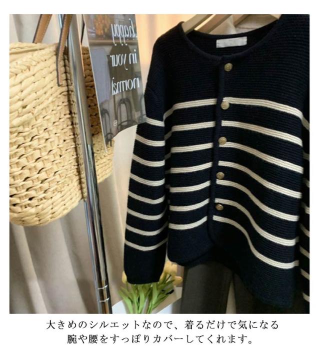 ボーダー カーディガン カーディガン 羽織り パイピング トップス レディース 長袖 金ボタン ニットカーディガン 体型カバー ゆったり キレイめ ボーダーカーデ 春秋 お洒落 通勤 トップス
