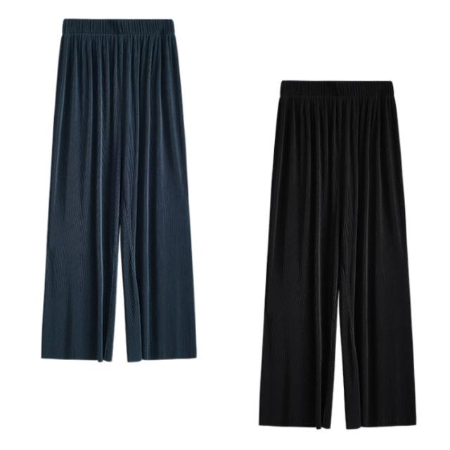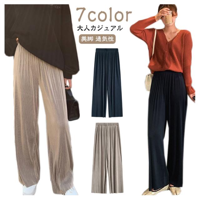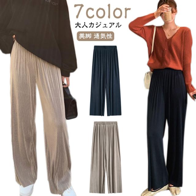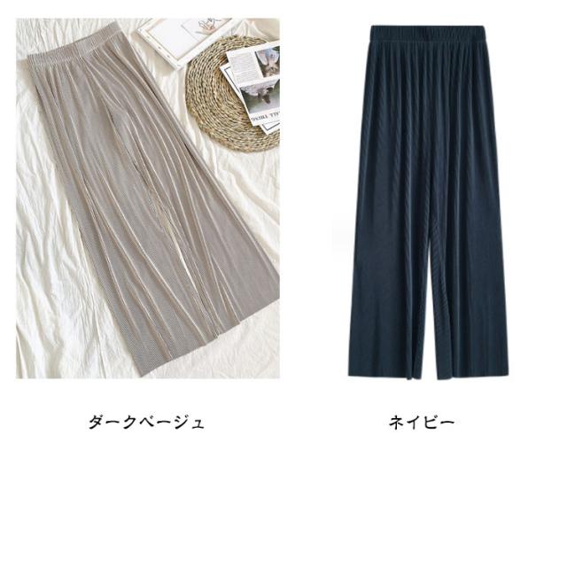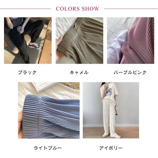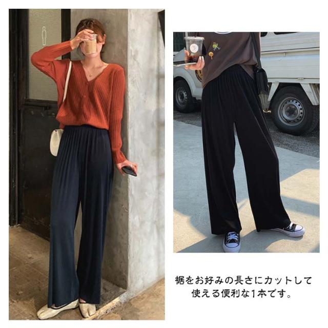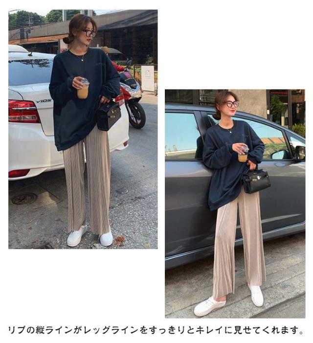 パンツ?リブパンツ?レディース?プリーツパンツ?リブ?ワイドパンツ?セルフカット ワイド イージーパンツ ロングパンツ ウエストゴム