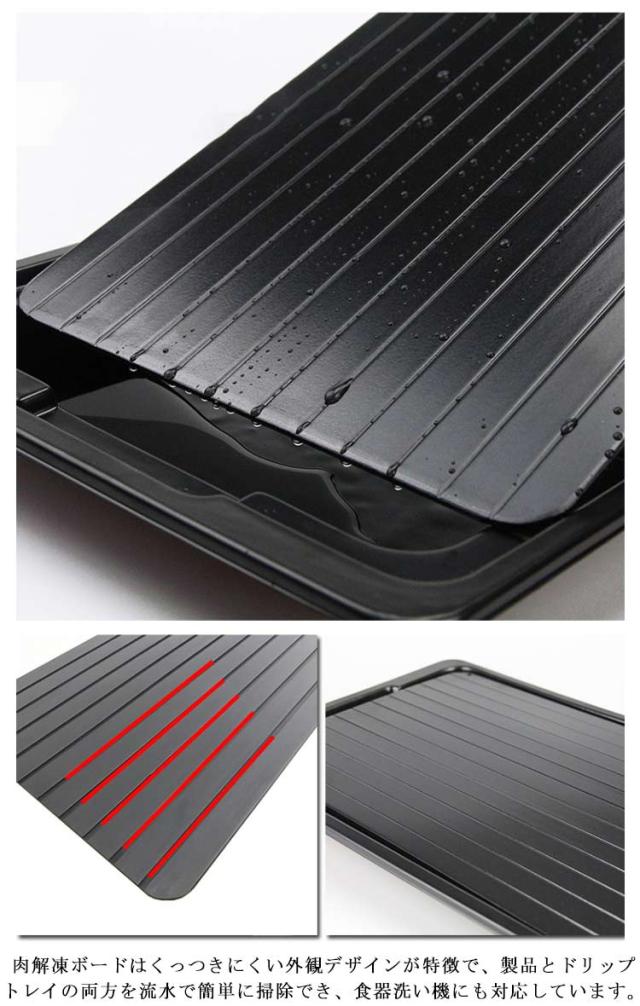| 【優れた品質】肉用解凍トレイの利点は、食品グレードのアルミニウム製で、生態学的な熱伝達方法で冷凍食品を解凍することです。電気不要 【簡単解凍】お肉解凍トレーの特徴は、自然解凍の8倍の速さで解凍時間を短縮し、肉が長時間露出するのを防ぎます。 【使いやすい】解凍トレイは冷凍肉や食品を解凍トレイに置くだけなので、特定の解凍時間は食品の厚さと室温によって異なりますので、便利に使用できます 【汚れ防止】解凍トレイの利点は、下にウォーターボックスがあり、液体がウォーターボックスに直接排出され、キッチンのカウンタートップが損傷したり汚れたりするのを防ぐことができることです。 【お手入れ簡単】肉解凍ボードはくっつきにくい外観デザインが特徴で、製品とドリップトレイの両方を流水で簡単に掃除でき、食器洗い機にも対応しています。 | |