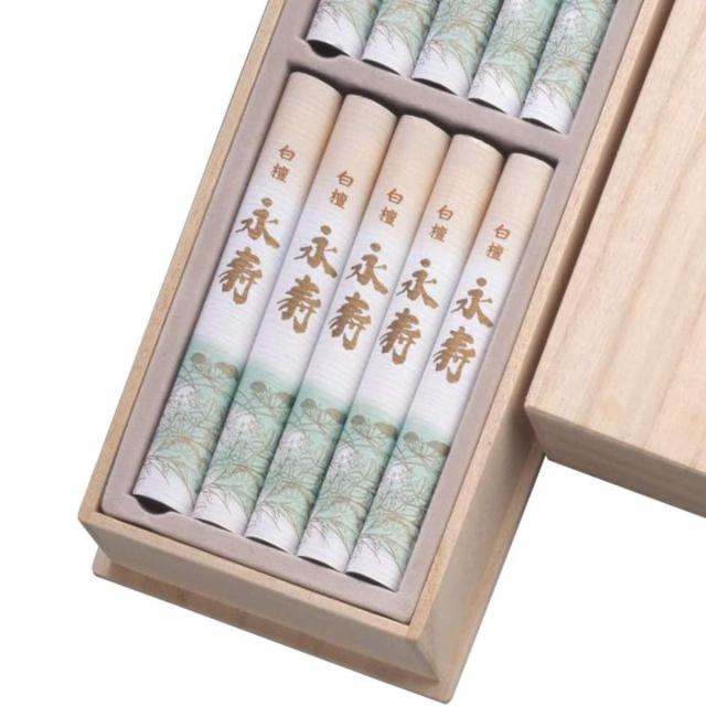 ![]() 沈香永寿 | ![]() 桐箱永寿 二種入り | ![]() 桐箱短寸 白檀永寿 |