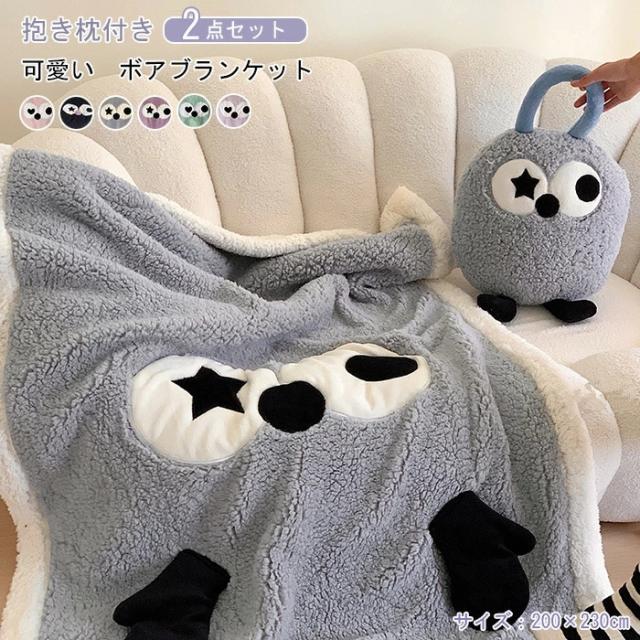 ブランケット アニマル 毛布 抱き枕付き 2点セット ボア毛布 かわいい どうぶつ もうふ ボアブランケット ダブル キング 200×230cm ふわふわ 防寒 冷房防寒 寒さ対策 モコモコ おしゃれ 暖かい プレゼント ギフト 秋 冬