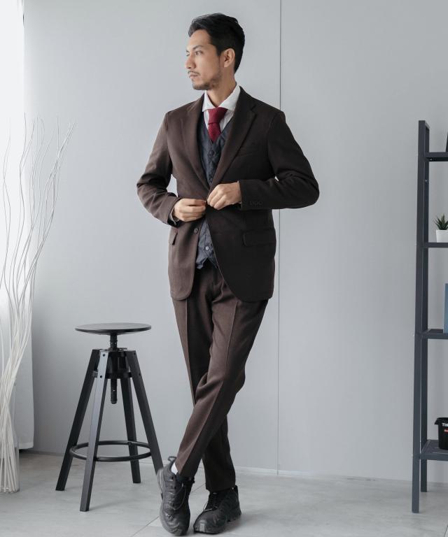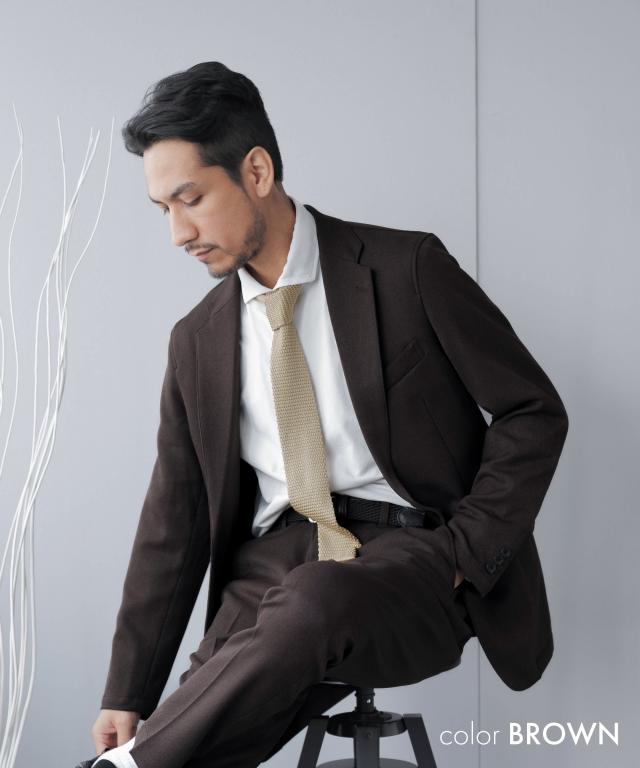 セットアップ メンズ スーツ 秋 冬 ビジネス ストレッチ テーラード 洗える ウールライク ウォッシャブル カジュアル オフィス カジュアル カジュアルスーツ 上下セット ブラウン ブルー ネイビー グレー チャコールグレー