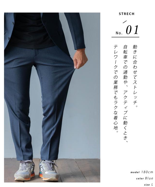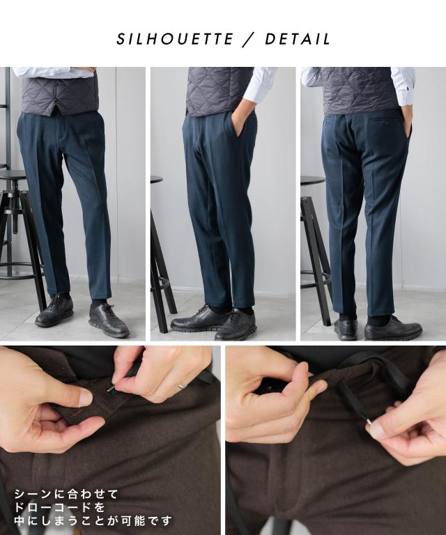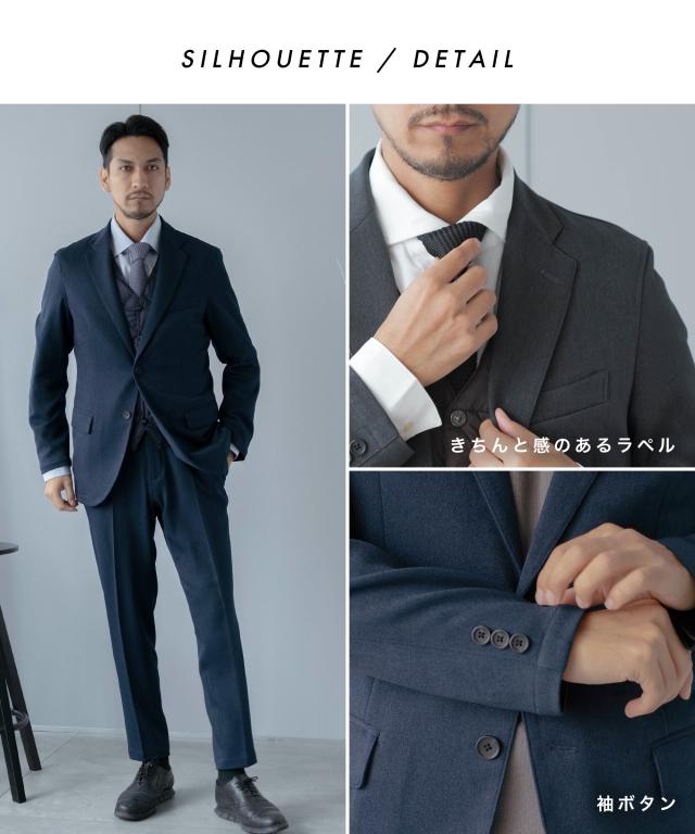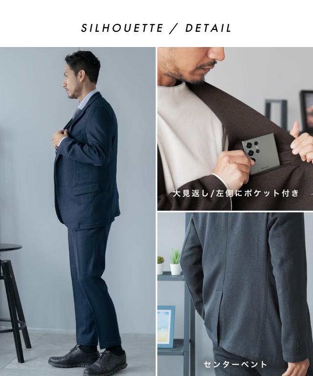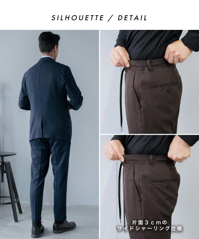 忙しい毎日の選択を「ちょっとラクにしてくれる」 杢調のウーリーな見た目と柔らかな肌触りの素材が秋冬によく合う、サキソニーセットアップ。 ニットやカットソーをはじめ、ネクタイでタイドアップしてビジネスシーンにもおすすめです。 ストレッチ性が高く、ニットのような動きやすい伸縮性。きちんと感がありながらも、リラックス感も両立する毎日着たくなるラクな着心地 スーツ専業メーカーが作るカジュアルスーツ。 立体的なパターンが生み出す、着用時の美しさと着心地の良さはスーツメーカーならでは。 季節感のあるサキソニーライクの生地はタイドアップして仕事着としてもおすすめ。 家庭で気楽に洗えてイージーケア。 ネットに入れて洗濯機へ。 いつも通り洗えてお手入れが楽ちん。 使うたびに洗えるから、いつもキレイをキープできます。 カーディガンのような軽い着心地とPC会議中もラクに着用できる快適設計。テレビ会議にも対応できるきれいな見た目がおすすめポイント。 ジャケット仕様 大見返し/左側にポケット付き センターベント レギュラーラペル 袖ボタン3つ パンツ仕様 片面3cmのサイドシャーリング仕様 ドローコード(使わないときは中にしまうことが可能です) |