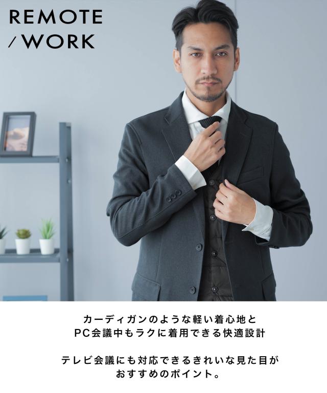 カーディガンのような軽い着心地とPC会議中もラクに着用できる快適設計