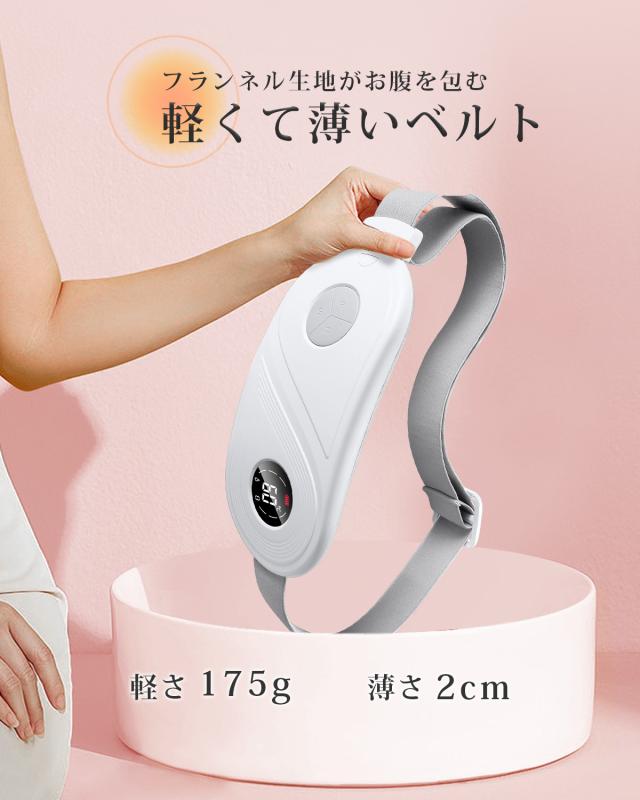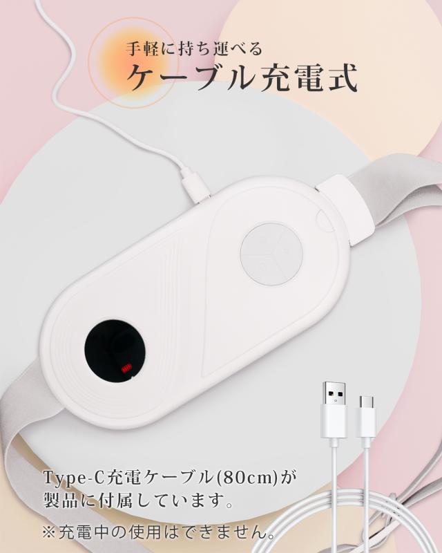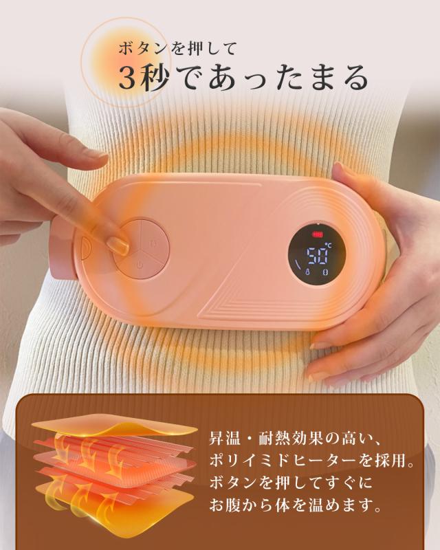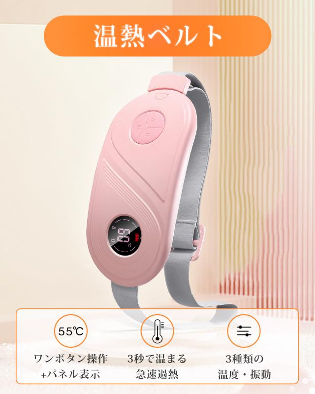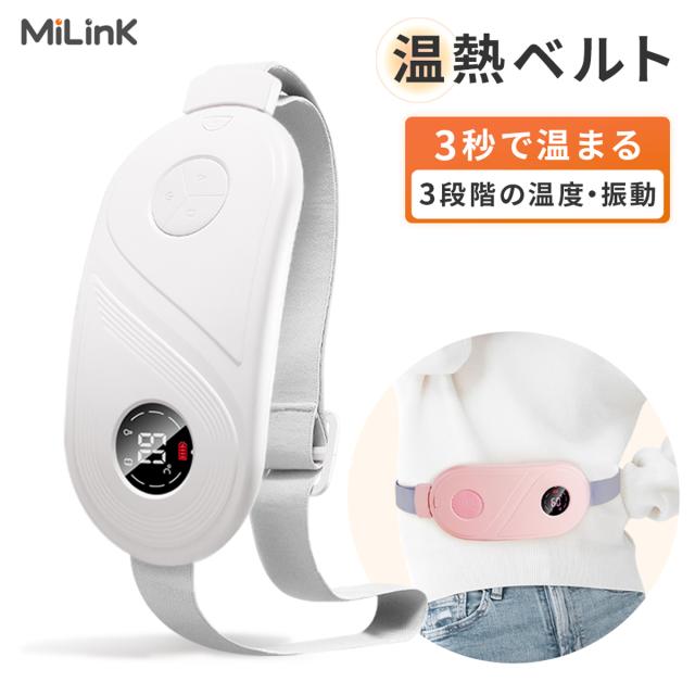 MiLink 温熱ベルト 加熱防止 30分自動タイマー機能 ホットベルト 温度/振動 3段階調整可能 ベルト長さ 自由調整 ボタン式 簡単操作 温めグッズ お腹 温め グッズ 腹巻 速暖 温活 Type-C 充電式 カイロ HBLT01 [ホワイト/ピンク]