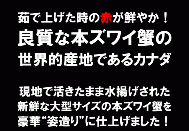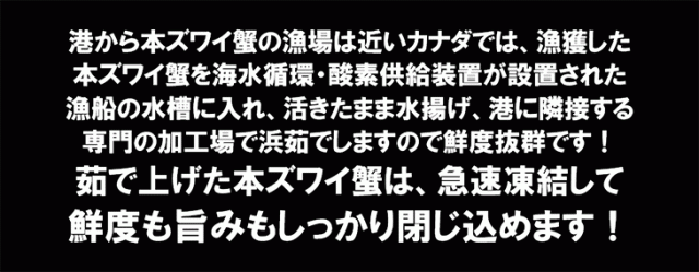 蟹はもともと水分が多い特性上、解凍後にNET重量から10%前後目減りすることがあります。予めご了承下さいますようお願い申し上げます。