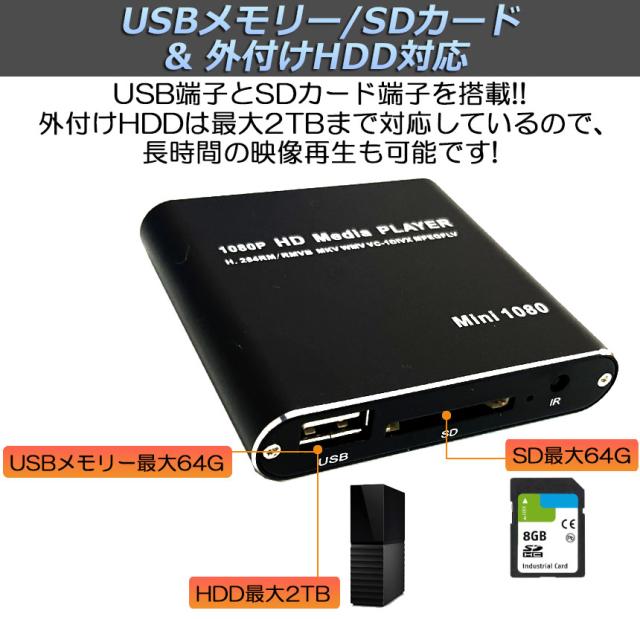 メディアプレーヤー デジタル 極小型 映像 再生機器 デジタル マルチメディアプレーヤー 大画面テレビや液晶モニターなどで簡単動画再生 SDカード USB HDD HDMI 出力 対応 1080p フルHD 日本語取扱説