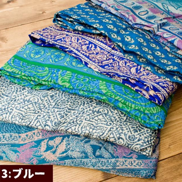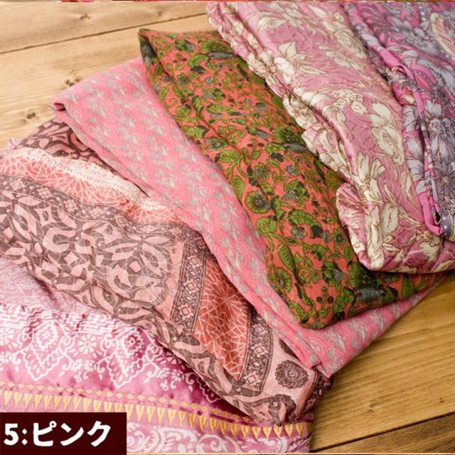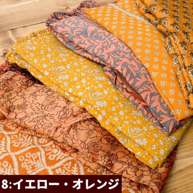 オールドサリーを縫い合わせているので、すべて1点物になります。色の組み合わせは、同じものが存在しないまさに世界で1枚だけのもの。どんな色の組み合わせが届くか、お楽しみ下さい。尚、すべて1点もののためアソートでのお届けとなります。具体的な柄や色の指定はお受けできかねますのでご了承くださいませ。