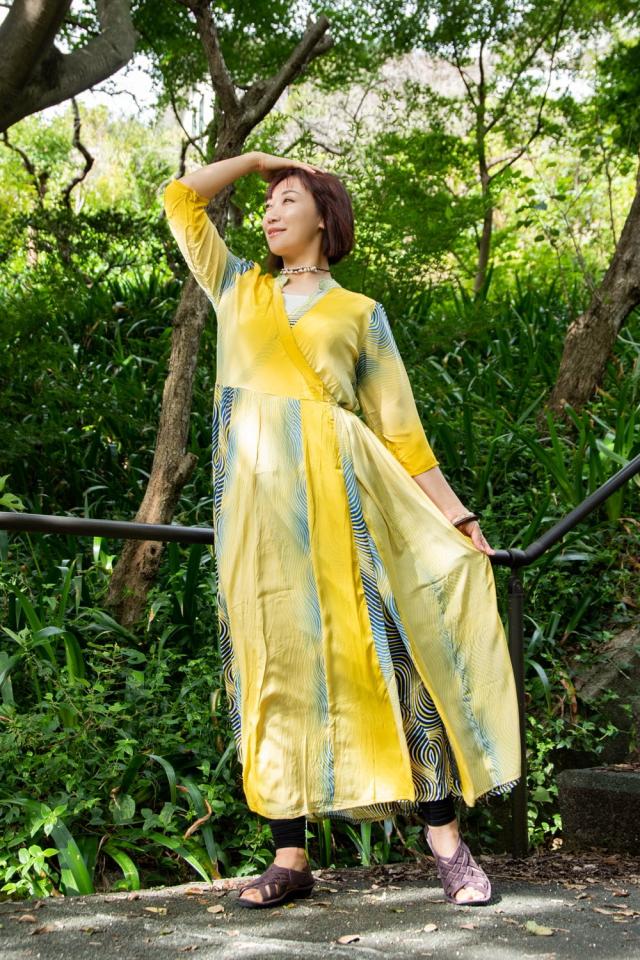 リサイクルオールドサリーで柔らかい質感が気持ち良いです実際に着てみると肌なじみもよく、美しいシルエットになります。