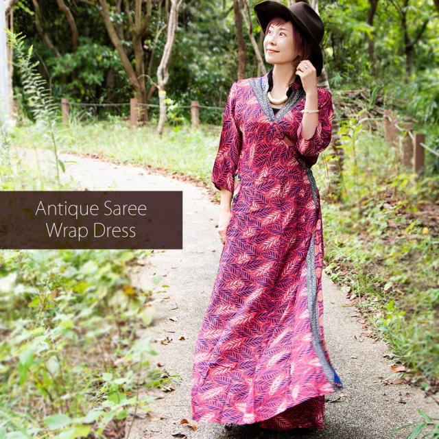 アンティーク,サリー生地,ラップワンピース,巻きワンピース,ロングワンピース,オールドサリー,ワンピース,