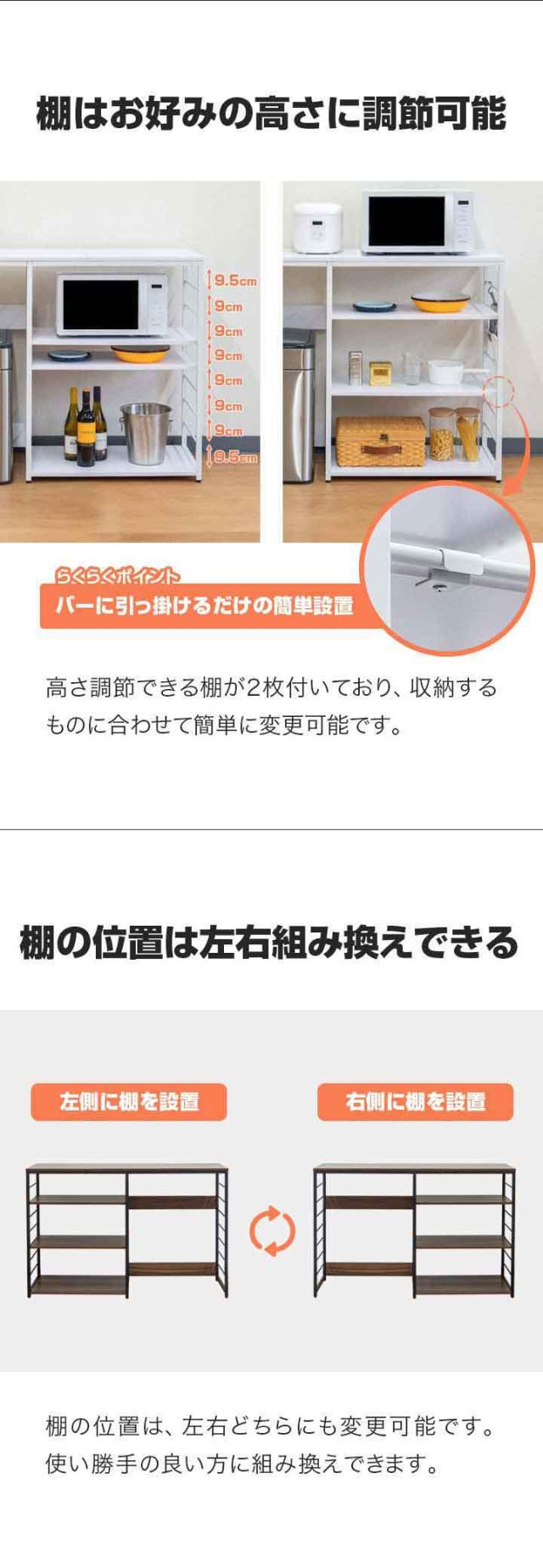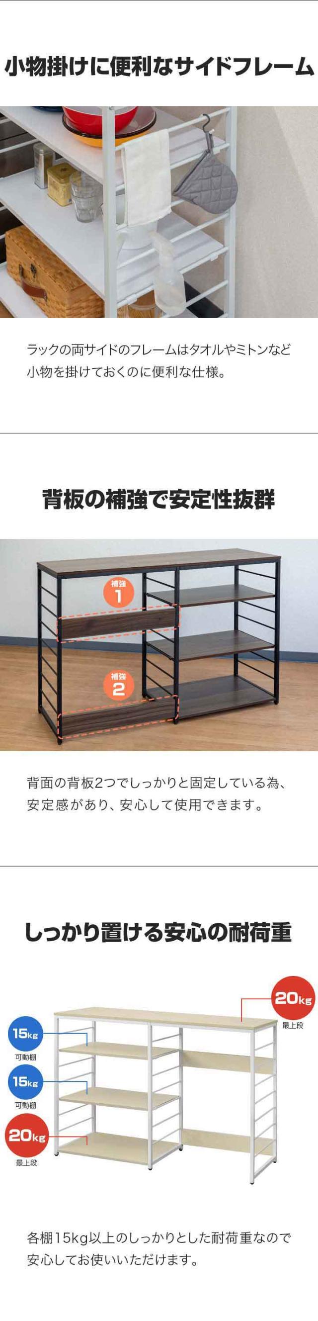 | 耐荷重: 天板:20kg 可動棚:各15kg 下段:20kg ※取扱説明書では可動棚の耐荷重は10kgと記載がありますが、正しくは15kgです。 |