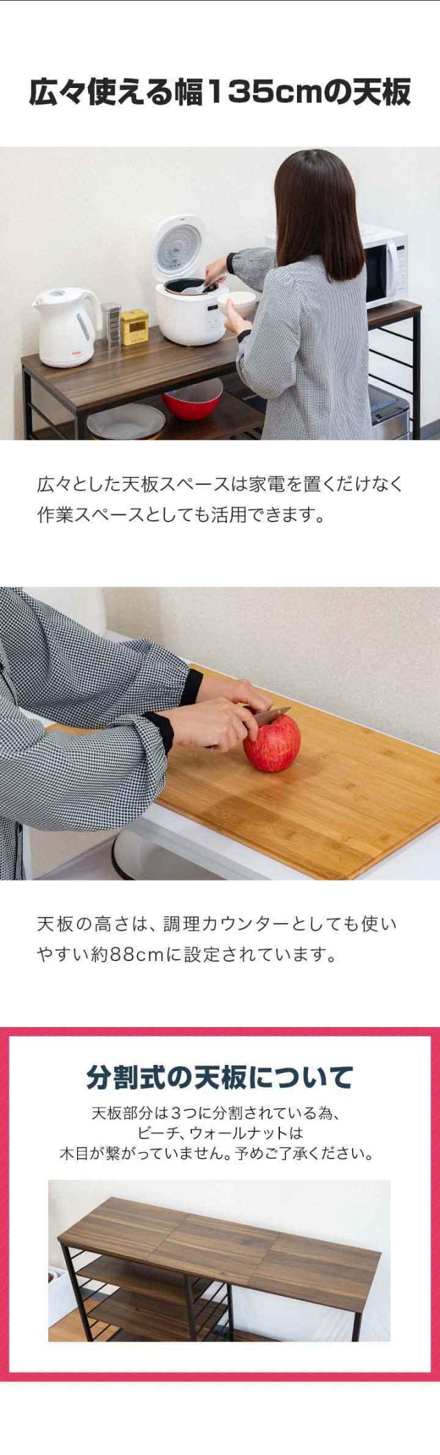 キッチンカウンター ゴミ箱収納 135幅 ワイド 高さ88cm レンジ台 ゴミ箱上ラック キッチン収納ラック キッチンボード 間仕切り テーブル レンジラック ゴミ箱上 収納棚 ラック レンジボード レンジ 棚 キッチンラック 食器棚 送料無料