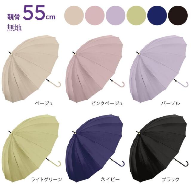 【セール価格】16本骨 無地 レディース 【送料無料】 女性 上品 かわいい おしゃれ 高強度 丈夫 パステルカラー シンプル カジュアル ベージュ ピンクベージュ パープル ライトグリーン モス オリーブ ネイビー 紺 ブラック 黒