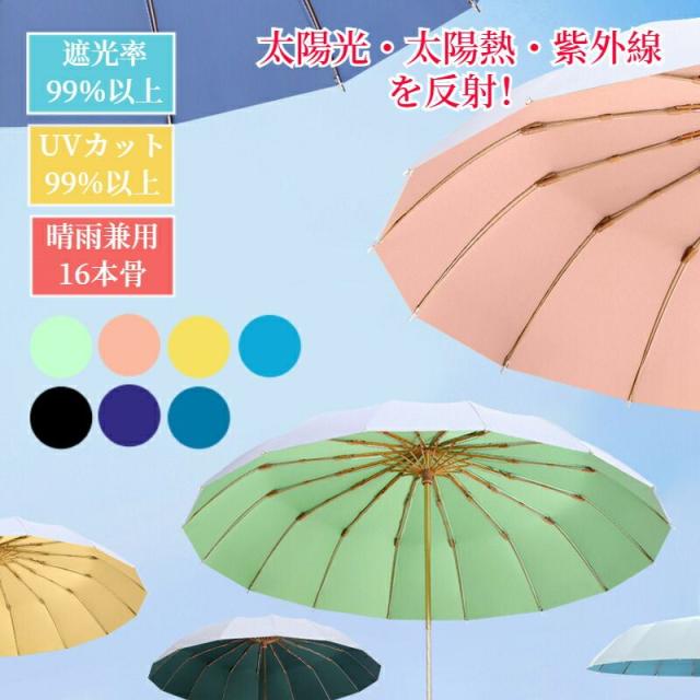 日傘 折りたたみ 完全遮光 晴雨兼用 16本骨 頑丈 耐久 男女兼用 遮光 UVカット 紫外線カット UPF50+ 遮光 遮熱 断熱 ひんやり チタンシルバーコーティング 折り畳み傘 手動開け傘 日差し傘 耐風 撥水 抗風 雨傘 コンパクト 実用 ギフト お中