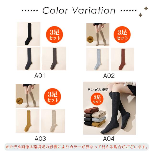 3足セット 靴下 レディース 綿 ハイソックス スクールソックス 裏起毛 裏毛 シンプル くつした 防寒 無地 暖かい 厚手 冬用