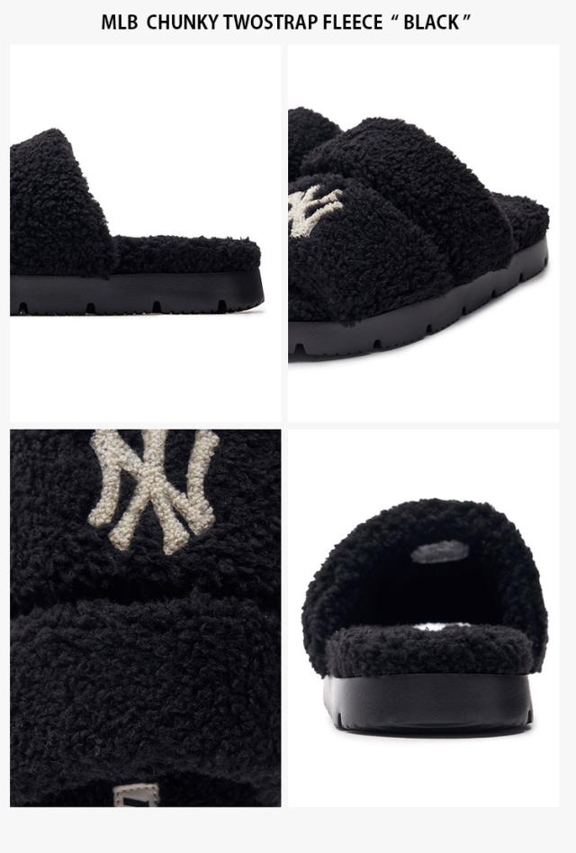 MLB エムエルビー ミュール MLB CHUNKY TWOSTRAP FLEECE BLACK フリース ボア シューズ スリッパ メンズ レディース 3ALPWSL36-50BKS