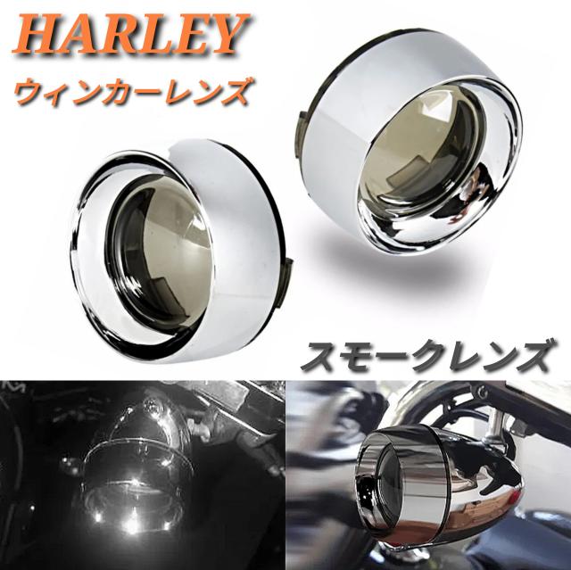 ●送料無料・国内在庫● 2個セット ハーレー ウィンカー ベゼル レンズ クロームスモーク ソフテイル スポーツスター ソフテイル