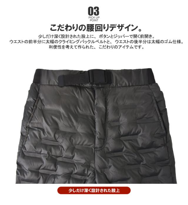 ファイバーダウンパンツ メンズ 中わた防寒パンツ シームレスパンツ 前あきパンツ 冬用 ボトムス【B7H】